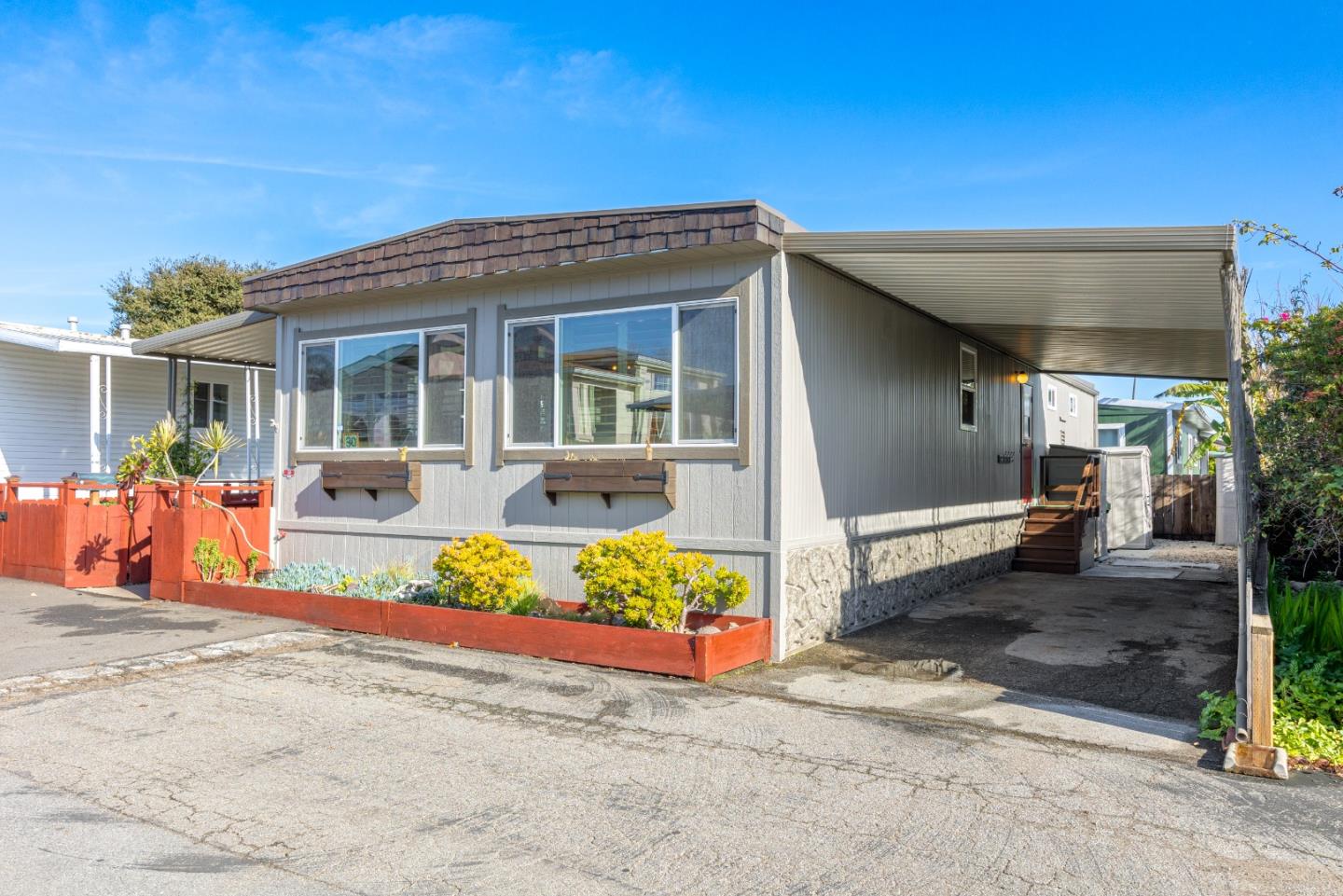 Embrace tranquility in this inviting mobile home, nestled in an all-age park and offering a spacious 1,120 sqft of pure comfort. With two bedrooms and two bathrooms, this retreat provides convenience with seamless commuting via easy access to highway 1. The well-maintained home exudes a cabin-like ambiance, creating a warm and cozy atmosphere. Inside, discover an open kitchen, a walk-in closet in the primary bedroom, and a beautiful low-maintenance yard. Just 5 minutes away from Pleasure Point's renowned surf breaks, this residence is a haven for beach enthusiasts. Explore nearby groceries, shopping, and restaurants, all within walking distance, making this property a delightful combination of coastal charm and everyday convenience. Monthly rent space is $450.